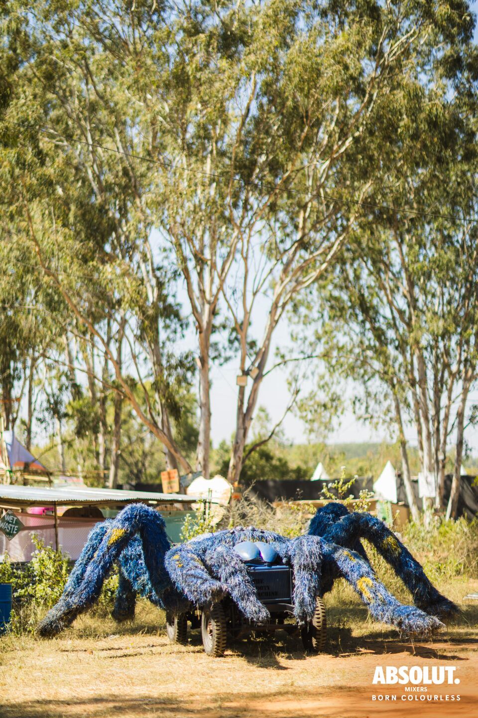 पगडंडी के एक गहरे, अधिक यांत्रिक कोने में, मैकेनिमल की एनिमेट्रोनिक-प्रेरित मूर्तिकला ने गूटी टारेंटयुला को श्रद्धांजलि अर्पित की, जो भारत की मूल निवासी एक दुर्लभ मकड़ी है और अपने आकर्षक नीलमणि रंग के लिए जानी जाती है। पूरी तरह से लगभग 100 किलोग्राम स्क्रैप से तैयार किया गया, जिसमें धातु के हिस्से, दांत, चिकन जाल और यहां तक कि छोड़ी गई लॉरी सीटें भी शामिल थीं, इस टुकड़े ने मशीन और जीव के बीच की रेखा को धुंधला करते हुए, अपने अति-यथार्थवादी आंदोलनों से दर्शकों को चौंका दिया।