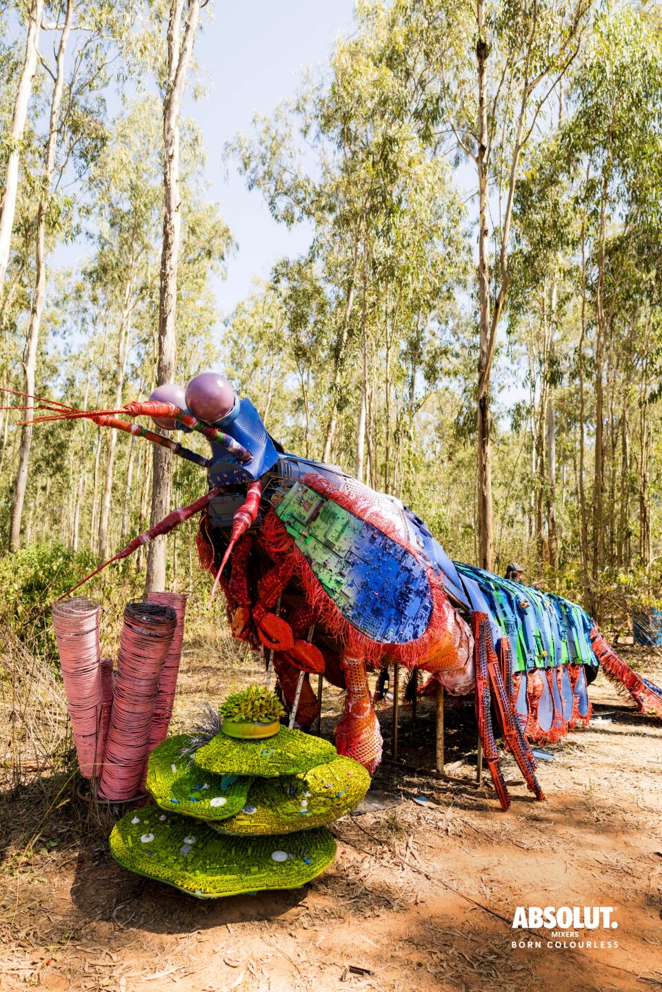 त्रिशला श्रीनिवास का 22 फुट ऊंचा भारतीय रोलर इंस्टालेशन उत्सव के मैदान पर सबसे आकर्षक दृश्यों में से एक था। पक्षी की बिजली की नीली पंखुड़ी और कलाबाज़ी उड़ान से प्रेरित होकर, मूर्तिकला धातु, पुनर्निर्मित प्लास्टिक, कपड़े, मलमल, जाल और एलईडी रोशनी का उपयोग करके बनाई गई थी। यह बैंगलोर के शांत खुले आसमान के सामने तनकर खड़ा था, प्रकाश और गति के साथ सूक्ष्मता से बदल रहा था क्योंकि यह रूप और आत्मा दोनों में जीवंत हो गया था।