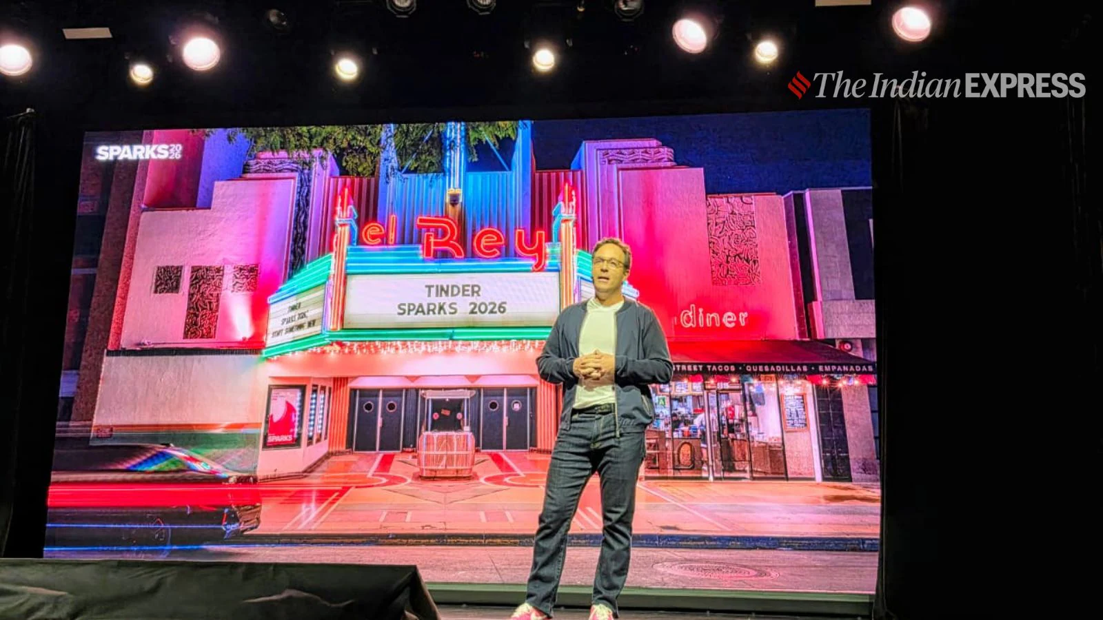 tinder 12 मार्च, 2026 को लॉस एंजिल्स में टिंडर के पहले उत्पाद लॉन्च कार्यक्रम में सीईओ स्पेंसर रास्कॉफ़। (छवि क्रेडिट: अनुज भाटिया/इंडियन एक्सप्रेस)