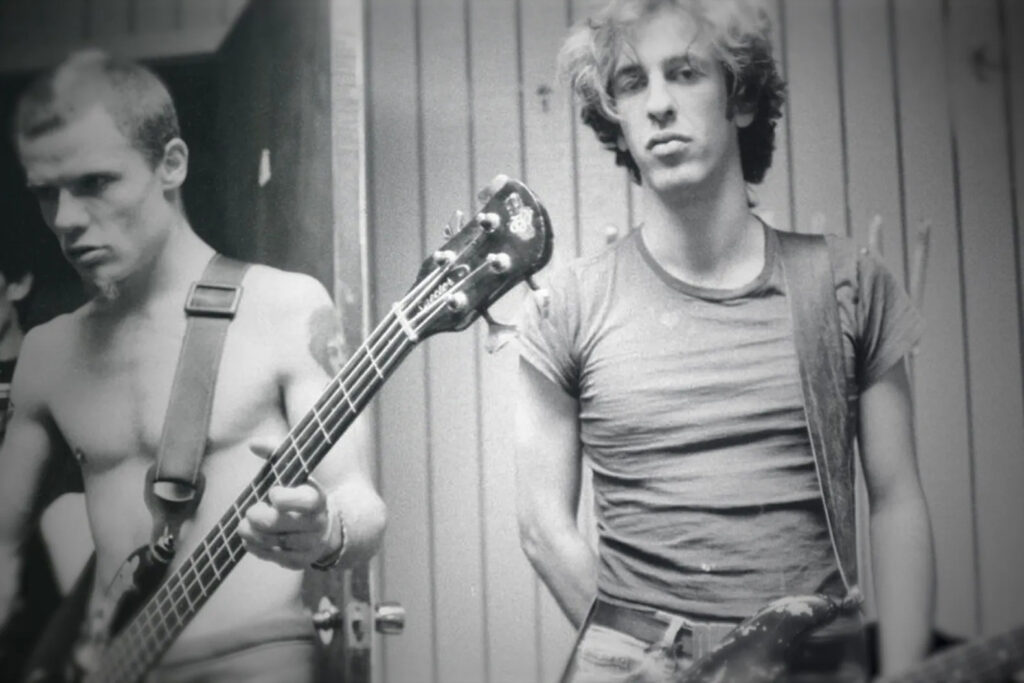 पिस्सू (बाएं) और स्लोवाक जैसा कि ‘द राइज़ ऑफ़ द रेड हॉट चिली पेपर्स: अवर ब्रदर, हिलेल’ में देखा गया है। फोटो: नेटफ्लिक्स