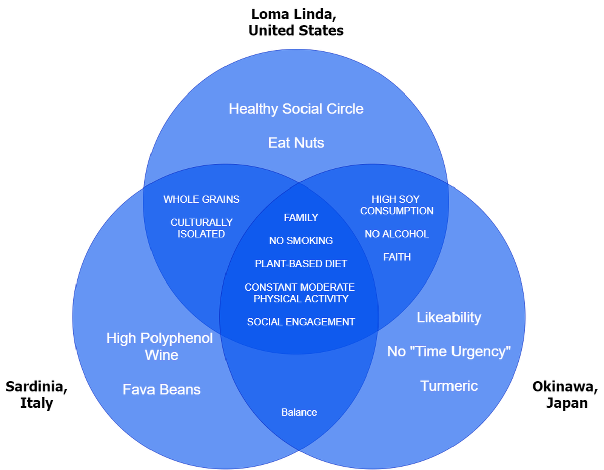 ब्लू ज़ोन अनुसंधान से एक प्रमुख अंतर्दृष्टि यह है कि आनुवंशिकी मानव दीर्घायु का केवल 20-30% ही जिम्मेदार है। शेष कारक – जैसे कि आहार, शारीरिक गतिविधि, सामाजिक संबंध, उद्देश्य और पर्यावरण – बहुत बड़ी भूमिका निभाते हैं, जो इस बात का सशक्त प्रमाण प्रस्तुत करते हैं कि हम कैसे जीते हैं यह उतना ही महत्वपूर्ण हो सकता है जितना कि हम कैसे पैदा हुए हैं।
