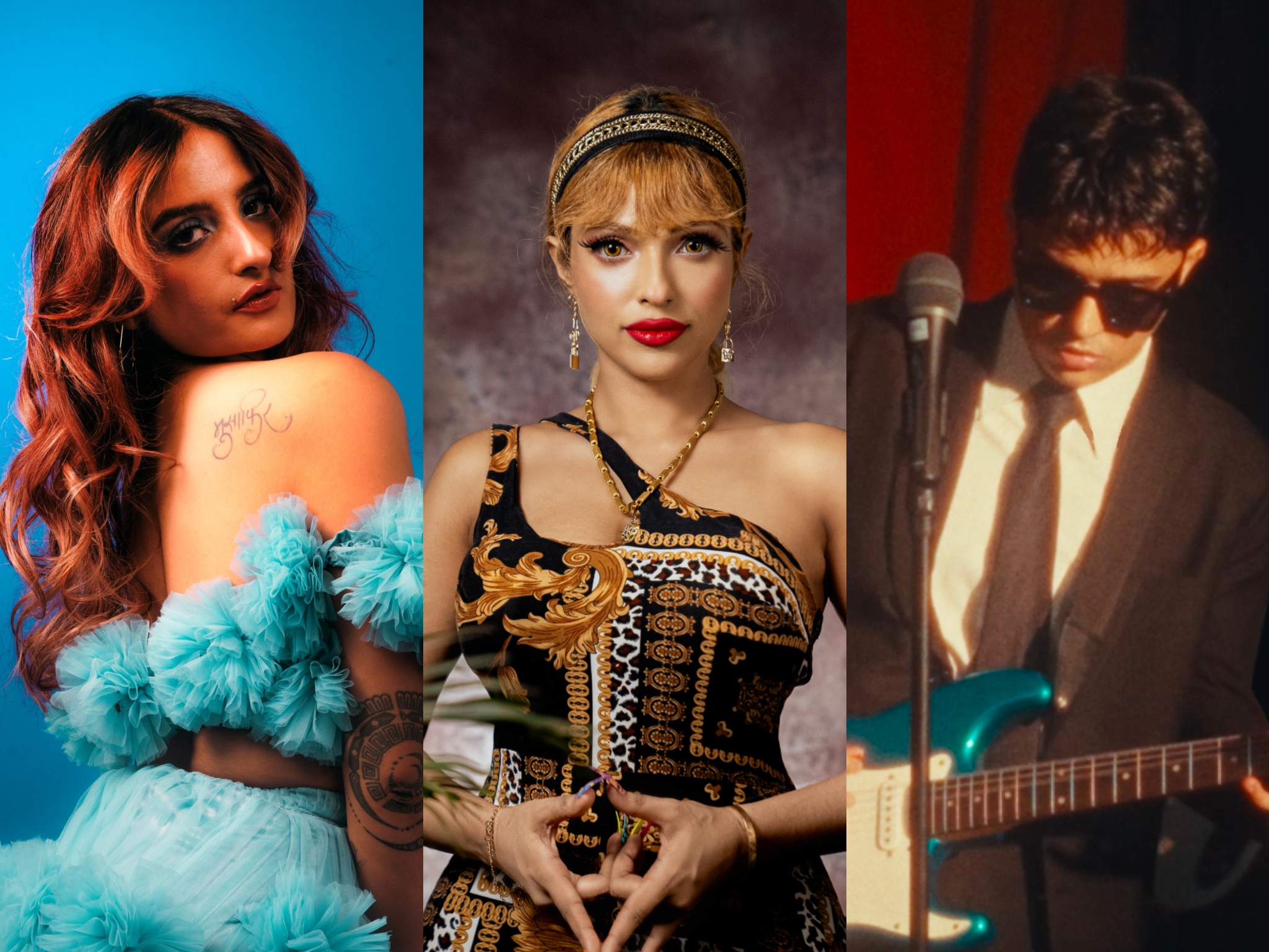 (बाएं से दाएं) रश्मीत कौर, इयक्की बेरी, जैनिष्ट जोशी का नया संगीत आया है। तस्वीरें: कलाकार के सौजन्य से