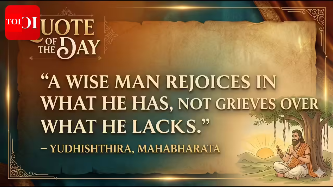 सदियों के बाद भी, महाभारत उन गहन ग्रंथों में से एक है जो लोगों को अच्छा जीवन जीने के लिए प्रेरित करता है। ‘महान भारतीय महाकाव्य’ कहा जाने वाला यह महाकाव्य नैतिकता का अध्ययन है जिसका हर इंसान को अध्ययन करना चाहिए। युधिष्ठिर की परीक्षाओं के माध्यम से, महाकाव्य सिखाता है कि सच्ची जीत युद्ध जीतने के बारे में नहीं है, बल्कि जीत और हार दोनों के सामने खुद को शांत रखने के बारे में है।आज के दिन का उद्धरण भी महाभारत से है, जो आपके पास जो है उसमें खुशी ढूंढने को दर्शाता है। ‘बुद्धिमान व्यक्ति उसके पास जो कुछ है उसमें खुश होता है, न कि उसके पास जो कमी है उस पर शोक मनाता है।’ ये पंक्तियाँ महाभारत के वन पर्व में मिलती हैं। कहानी में, यह पंक्ति यक्ष प्रश्न के दौरान आती है, जो महाकाव्य के सबसे विचारोत्तेजक भागों में से एक है। निर्वासन के दौरान, युधिष्ठिर खुद को एक कठिन स्थिति में पाते हैं जब उनसे अपने भाइयों के जीवन को बचाने के लिए एक रहस्यमय यक्ष द्वारा पूछे गए 124 दार्शनिक पहेलियों का उत्तर देने के लिए कहा जाता है। जब उनसे सच्ची ख़ुशी के रहस्य और एक “बुद्धिमान व्यक्ति” बनने के बारे में पूछा गया, तो युधिष्ठिर ने संतोष पर प्रकाश डाला। वह समझाते हैं कि दुख एक अनुशासनहीन दिमाग से आता है जो इस बात पर ध्यान केंद्रित करता है कि क्या गायब है, जबकि ज्ञान में पहले से मौजूद प्रचुरता को पहचानना शामिल है। यह उद्धरण “खुश रहो” के आह्वान से कहीं आगे जाता है; यह मानसिक स्वतंत्रता प्राप्त करने का एक तरीका है। “किसी के पास जो कमी है उस पर शोक करना” निरंतर गरीबी की स्थिति में रहना है, चाहे वित्तीय स्थिति कुछ भी हो। यह मन को ऐसी जगह फँसा देता है जहाँ भविष्य की इच्छाएँ वर्तमान वास्तविकता के मूल्य को कम कर देती हैं। उद्धरण इस बात पर जोर देता है कि “आनन्दित होना” एक सचेत विकल्प है। एक बुद्धिमान व्यक्ति अपने वर्तमान संसाधनों को देखता है – चाहे वह स्वास्थ्य हो, रिश्ते हों, या साधारण भोजन हो – और उन्हें शांति के आधार के रूप में उपयोग करता है।