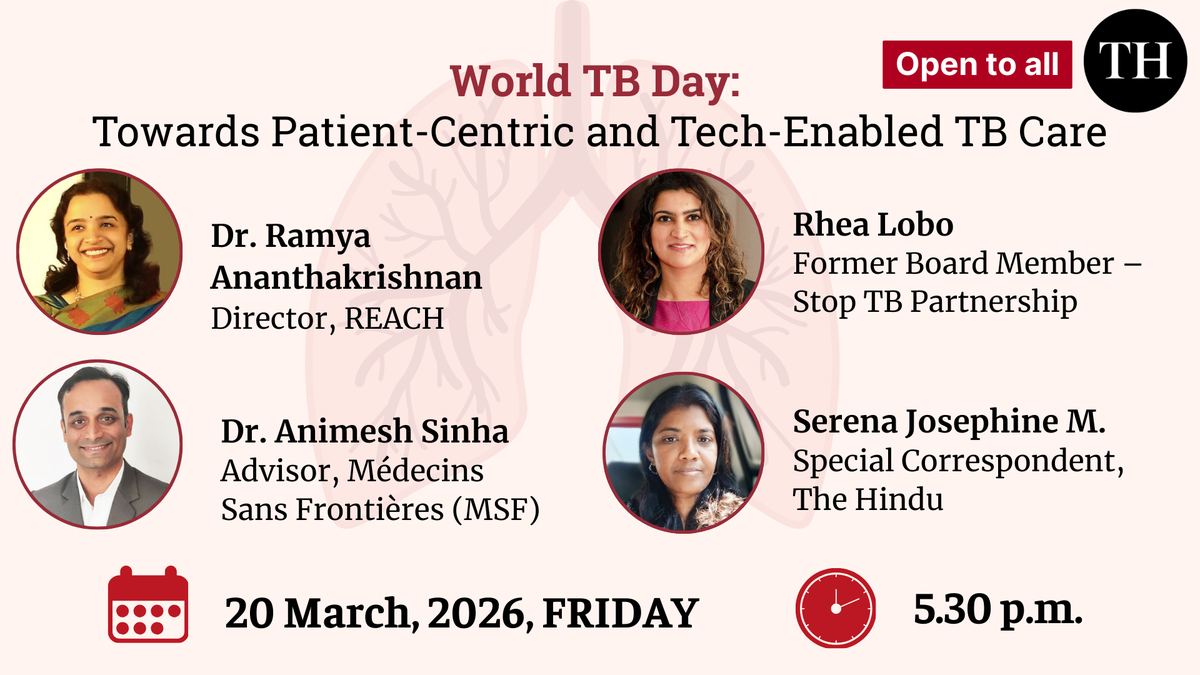 विश्व टीबी दिवस से पहले, द हिंदू शुक्रवार, 20 मार्च, 2026 को “विश्व टीबी दिवस: रोगी-केंद्रित और तकनीक-सक्षम टीबी देखभाल की ओर” विषय पर एक निःशुल्क सार्वजनिक वेबिनार आयोजित करेगा। वेबिनार शाम 5.30 बजे से 6.30 बजे तक आयोजित किया जाएगा