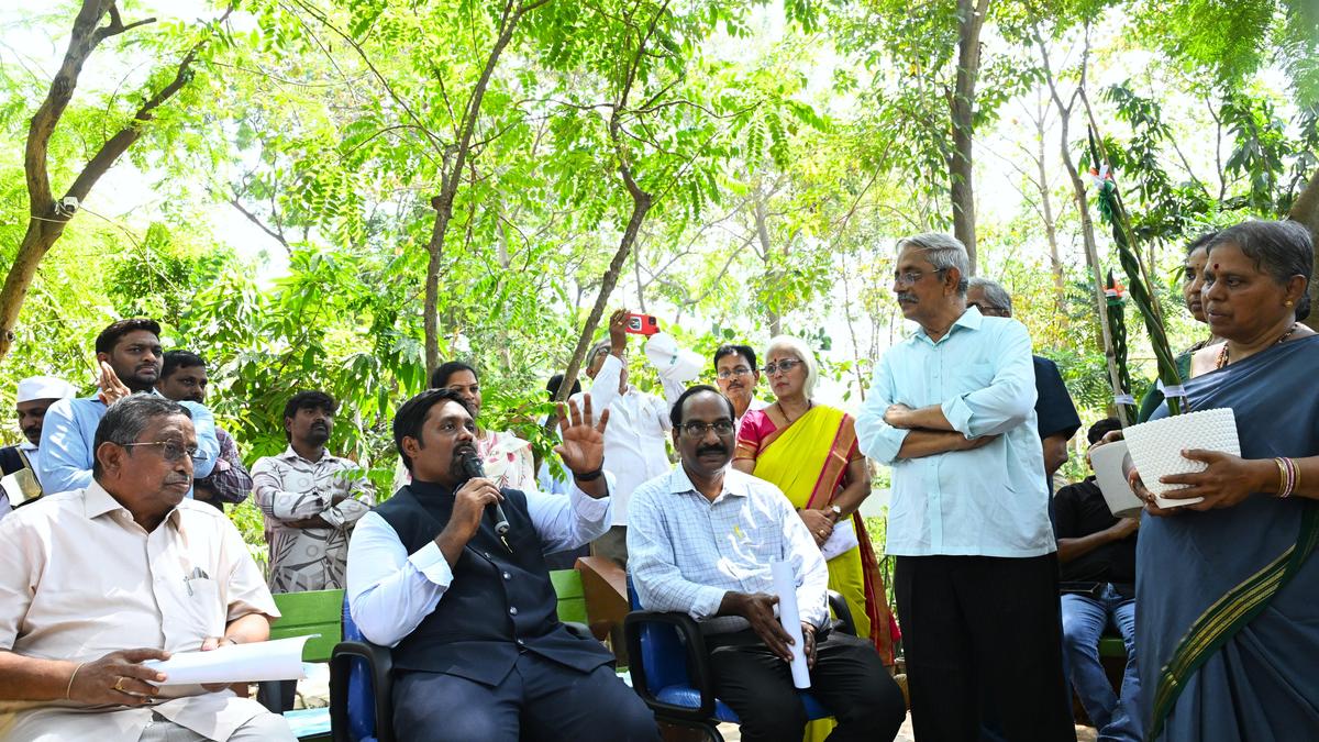 गुरुवार को विशाखापत्तनम में पार्क के रजत जयंती समारोह के दौरान वीएमआरडीए आयुक्त ने जैव विविधता पार्क टीम के साथ बातचीत की.. | फोटो साभार: वी. राजू