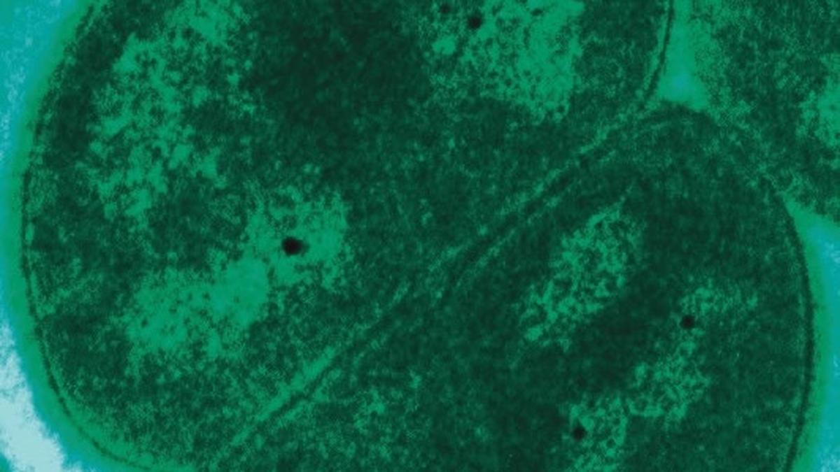 डाइनोकोकस रेडियोड्यूरन्स का एक ट्रांसमिशन इलेक्ट्रॉन माइक्रोग्राफ।