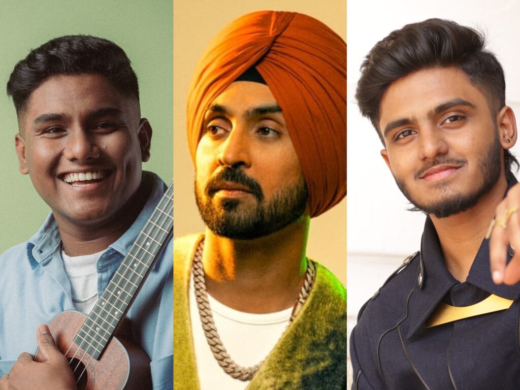 (बाएं से दाएं) दीक्षांत, दिलजीत दोसांझ और साईं अभ्यंकर का नया संगीत इस सप्ताह हमारे रडार पर है। तस्वीरें: कलाकारों के सौजन्य से