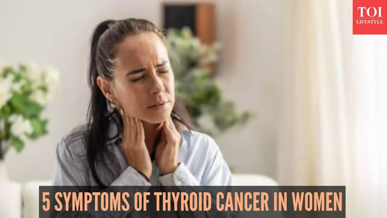 थायराइड कैंसर थायरॉयड ग्रंथि में शुरू होता है, जो चयापचय, हृदय गति, रक्तचाप और शरीर के तापमान को नियंत्रित करने वाले हार्मोन बनाने के लिए जिम्मेदार है, जैसा कि कहा गया है। अमेरिकन कैंसर सोसायटी. इसके अनुसार, वर्ष 2025 में अमेरिका में थायराइड कैंसर के लगभग 44,020 नए मामलों का अनुमान लगाया गया था। अधिकांश कैंसर की तुलना में, थायराइड कैंसर का निदान अक्सर 51 वर्ष की कम उम्र में किया जाता है। इसके अलावा, यह पुरुषों की तुलना में महिलाओं में 3 गुना अधिक आम है। यही कारण है कि समय पर निदान की आशा करने के लिए महिलाओं को कैंसर के लक्षणों के बारे में जागरूक होना महत्वपूर्ण है। यहां थायराइड कैंसर के 5 लक्षण हैं जिन्हें महिलाओं को जरूर जानना चाहिए।